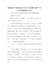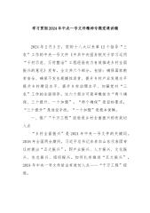 党课讲稿:学习贯彻2024年中央一号文件精神用好“千万工程”经验的要点与方法中共中央党校(国家行政学院)经济学教研部教授 (2024年3月6日)2024年2月3日,党的十八大以来第12个指导“三农”工作的中央一号文件《中共中央国务院关于学习运用“千村示范、万村整治”工程经验有力有效推进乡村全面振兴的意见》发布,全文共六个部分,包括:确保国家粮食安全、确保不发生规模性返贫、提升乡村产业发展水平、提升乡村建设水平提升乡村治理水平、加强党对“三农”工作的全面领导。这六个部分可简单概括为“两个确保、三个提升、一个加强”,“两个确保”是目标要求,“三个提升”是途径手段,“一个加强”是根本保障。一、推广“...