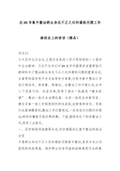 在XX市集中整治群众身边不正之处和腐败问题工作推进会上的讲话(精品)同志们:今天召开这次会议,主要任务是深入学习贯彻党的二十届四中全会精神、习近平总书记对XX省系列重要讲话重要指示精神和关于整治群众身边不正之风和腐败问题的重要论述,全面贯彻落实党中央及省委有关部署,对我市集中整治工作进行再动员、再部署、再推动。自整治工作开展以来,全市上下迅速行动、攻坚克难,取得了查处一批基层“蝇贪蚁腐”、整治一批行业治理乱象、办好一批民生实事项目、健全完善一批工作制度的阶段性成效,成绩值得肯定。但我们也要清醒看到,整治工作任重道远,一些深层次问题仍未根治,稍有松懈就可能反弹回潮。下面,围绕深化下阶段整治工作,...