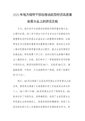 2025年地方领导干部在推动民营经济高质量发展大会上的讲话文稿