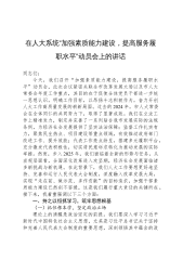 在人大系统“加强素质能力建设,提高服务履职水平”动员会上的讲话