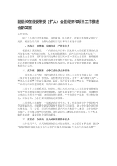 副县长在县委常委(扩大)会暨经济和项目工作推进会的发言各位领导:刚才X个部门对经济指标、项目建设、资金拨付、招商引资等情况进行了通报,根据会议安排,由我对全县经济运行和项目推进作安排。一、抓统计、保增速,全面完成一产指标任务根据统计预测情况,一产有望完成州目标,因此科农水局要紧紧围绕农业增加值实现**%增速的目标,扎实抓好数据统计,会同统计局加强对记账户、农技员业务培训,组织专业人员定期前往记账户家中开展业务指导,准确把握指标统计口径范围,对上报的农业主要指标开展评估,对数据变动幅度较大,存在质疑的数据重点核实并报送相应情况说明,提高农业统计数据质量,确保数据统计无误。二、抓升规、强服务,力争...