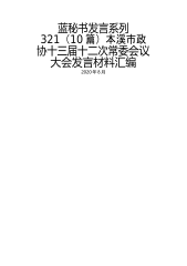 蓝秘书发言系列321(10篇)本溪市政协十三届十二次常委会议大会发言材料汇编2020年8月目录1.市政协委员、市政协经济委副主任、市机关事务管理局副局长周建军:关于加快推进我市智能塔吊制造产业发展的建议12.市政协常委、九三学社本溪市委委员、明山区副区长周晓婕:关于持续推进本溪智慧城市建设的建议33.市政协委员、市政协学习宣传和文化文史委副主任孟庆福:关于“十四五”期间规划建设“太雅浑”慢行绿道的建议54.市政协委员、本溪满族自治县委常委、统战部部长张蕾:关于本溪明长城遗址保护利用的建议75.市政协委员、市政协提案委副主任张春菊:关于“十四五”加快推进重点交通项目建设持续拉动本溪经济社会发展的...