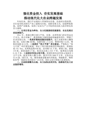 强化资金投入 夯实发展基础推动现代化大农业跨越发展——农村工作会议农业汇报