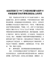 在政府系统五个年工作落实情况暨全面学X对标提效能活动开展情况推进会上的讲话.doc