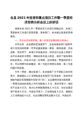 在县2021年投资和重点项目工作暨一季度经济形势分析会议上的讲话).