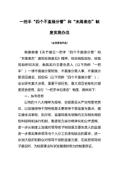 一把手“四个不直接分管”和“末尾表态”制度实施办法(会员原创作品)根据县委《关于建立一把手“四个不直接分管”和“末尾表态”度的实施意见》精神,结合我院实际,经院党组研究决定,我院实行主要负责人(以下简称“一把手”)一律不直接分管财务、不直接分管人事、不直接分管项目建设、招投标(以下简称“四个不直接分管”);会议研究重大决策、重要干部任免、重大项目安排和大额度资金使用,实行“一把手末位表态”制度,具体如下:一、指导思想以党的十八大精神为指导,全面落实从严治党管党责任,以加强领导干部特别是主要领导干部监督为重点,建立健全决策权、执行权、监督权既互相制约又互相协调的权利结构和运行机制,推进权力运行程...
