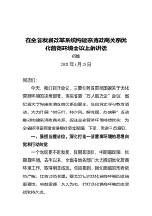 在全省发展改革系统构建亲清政商关系优化营商环境会议上的讲话何雄2021年6月25日同志们:今天,我们召开会议,主要任务是贯彻国家关于优化营商环境的决策部署,落实省委“万人助万企”会议、省纪委关于构建亲清政商关系的要求,结合党史学习教育活动,大力开展“树标杆、转作风、解难题、办实事”活动推动构建亲清政商关系,促进全省营商环境持续优化,为全省经济高质量发展提供坚实保障。下面,我讲三点意见。一、强担当提站位,深化打造一流营商环境的思想自觉和行动自觉一个地区要不断发展,短期靠项目,中期靠政策,长期靠环境。去年以来,全省各地各部门大力推进优化营商环境工作,取得明显成效。但应看到,我们面临的形势依然严峻、...