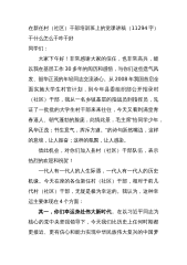 在乡镇街道党(工)委书记交流会上的发言材料汇编(3篇)1.“一网两访三为”探索基层治理新路径.........22.党建引领强服务基层治理新实践.............43.加快建设和美乡村打造乡村振兴示范镇........6"一网两访三为"探索基层治理新路径酒泉路街道党工委坚持做实需求、资源、项目“三个清单”,优化为民办事体系,有力推动老街区焕发新动力。“一网”揽尽民情。坚持和发展新时代“枫桥经验”,抓实网格化管理,在辖区设置“红黄绿”网格54个,由社区书记和“两委”成员分别担任红黄网格网格长。壮大网格工作力量,建立“1+3+X”网格力量体系,每个网格由1名专职网格员+3名兼职网格员+X名...