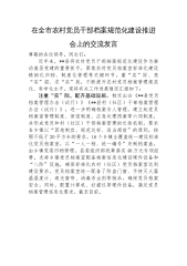 在全市农村党员干部档案规范化建设推进会上的交流发言尊敬的各位领导,同志们:近年来,**县将农村党员干部档案规范化建设作为推动基层党建的重要抓手,聚焦农村党员档案室标准化建设精细化归档、制度化管理等关键环节,重“实”际、亮“实”招、求“实”效,不断提升农村党员档案管理规范化、科学化水平。现将有关工作进展情况汇报如下:注重“实”际,配齐基础设施。制定出台《**县党员档案管理办法(试行)》《**县村(社区)干部档案管理办法(试行)》,进一步明确档案专人管理,建立起党员档案室管理制度、保密制度、应急处理预案等六项制度,并形成党员和村(社区)干部档案管理的长效机制。要求各乡镇以“因地制宜、规范达标、适当...
