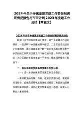 2024年关于乡镇基层党建工作责任制调研情况报告与市审计局2023年党建工作总结【两篇文】