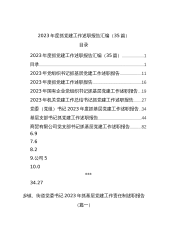 【35篇】2023年度抓基层党建工作述职报告汇编(基层党支部书记、国有企业公司、党组、乡镇街道街道、社区、市等、党工委书记)