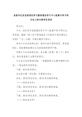 县委书记在县委党纪学习教育理论学习中心组集中学习研讨会上的主持词及讲话同志们:今天,我们召开县委理论学习中心组集中学习研讨会,目的是:围绕“深入学习贯彻落实《中国共产党纪律处分条例》”这一主题,开展专题学习研讨。参加今天会议的同志有:县四大班子领导成员,县法院院长、县检察院检察长以及其他县级领导干部。列席今天会议的同志有:各乡镇(街道)党(工)委书记、部分县直部门主要负责同志。今天会议共有两项议程:一是围绕研讨主题开展研讨发言;二是由我作总结讲话。下面,我们逐项进行。会议进行第一项议程:开展研讨发言。首先,请XX同志发言,请XX同志做好准备。(……待发言完毕)下面,请XX同志发言,请XX同志做...