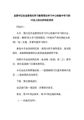 县委书记在县委党纪学习教育理论学习中心组集中学习研讨会上的主持词及讲话同志们:今天,我们召开县委理论学习中心组集中学习研讨会,目的是:围绕“深入学习贯彻落实《中国共产党纪律处分条例》”这一主题,开展专题学习研讨。参加今天会议的同志有:县四大班子领导成员,县法院院长、县检察院检察长以及其他县级领导干部。列席今天会议的同志有:各乡镇(街道)党(工)委书记、部分县直部门主要负责同志。今天会议共有两项议程:一是围绕研讨主题开展研讨发言;二是由我作总结讲话。下面,我们逐项进行。会议进行第一项议程:开展研讨发言。首先,请XX同志发言,请XX同志做好准备。(……待发言完毕)下面,请XX同志发言,请XX同志做...