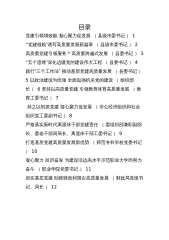 目录党建引领增效能凝心聚力促发展(县级市委书记)1“党建领航”谱写高质量发展新篇章(县级市委书记)2高质量党建引领服务* 高质量跨越式发展(县委书记)3“五个思维”深化边疆党的建设伟大工程(县委书记)4践行“三个工作法”推动基层党建高质量发展(县委书记)5以政治建设为统领全面加强机关党的建设(组织部长)6坚持以高质量党建引领教育体育高质量发展(教育工委书记)7持之以恒抓党建凝心聚力促发展(非公经济组织和社会组织党工委副书记)8严格落实新时代离退休干部党建责任(委组织部兼职副部长、委老干部局局长、离退休干部工委书记)9打造基层党建高质量发展新优势(师范专科学校党委书记)10凝心聚力踔厉奋发为建设...