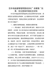 区市场监督管理局围绕深化”放管服“改革、优化营商环境发言材料