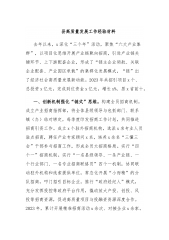 在党建引领基层治理工作会议上的交流发言:突出“三个聚焦”不断提升城市基层治理质效近年来,我县始终坚持“突出党建引领、重心下移、共建共享”,着力推动组织引领赋力、治理协同发力、服务多元聚力,不断提升城市基层治理质效。一、聚焦党建引领,凝聚治理合力。一是健全领导体制。调整优化县委党建引领城市基层治理领导小组,由县委书记任组长,6名县级领导任副组长,下设2个专项工作组,相关街道、社区为工作组成员,全面构建“县委—街道党工委—社区党组织”三级党组织书记抓基层治理工作领导体系。二是强化区域联动。深化街道社区区域化党建工作格局,推动86家驻区单位、社会组织、新业态企业等与街道社区“签约共建”,成立“睦邻共...