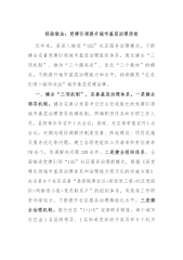 经验做法:建立矛盾纠纷多元化解机制力促矛盾纠纷一站式化解县大力推进矛盾纠纷多元化解一站式平台建设,推动实现矛盾纠纷一站式接收、一揽子调处、全链条解决。一、一体化运作强化组织领导。成立由县委政法委书记和副县长任双组长的矛盾纠纷多元化解工作领导小组,明确县委政法委牵头,司法、信访等部门参与的组织架构,各镇街分别成立工作专班,负责矛盾纠纷一站式调处中心统筹推进工作明确功能定位。县委政法委负责协调部门、行业资源以及各类社会组织力量参与化解矛盾纠纷;镇街根据工作需要设置功能区,发挥处置分流、组织协调和指挥调度作用;村(社区)承担辖区内矛盾隐患预警排查、上级分流案件办理处置。规范工作流程。县级中心由信访局...