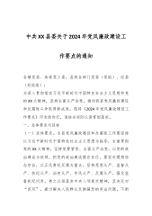 中共XX县委关于2024年党风廉政建设工作要点的通知