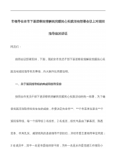 市领导在全市下基层察民情解民忧暖民心实践活动部署会议上对巡回指导组的讲话同志们:按照会议部署安排,下面,我把全市党员干部下基层察民情解民忧暖民心实践活动巡回指导有关事项,向大家作以简要说明。一、关于巡回指导组的构成和指导安排按照全市党员干部下基层察民情解民忧暖民心实践活动的统一部署,为了确保实践活动取得实实在在的成效,市委决定向全市**、**个市直单位派出**个巡回指导组。每一个指导组1名组长、2名成员,组长均是由了解基层、熟悉党务、作风扎实、威望很高的县级领导干部担任,并经市委主要领导审定同意;2名成员中,其中一名是市委组织部干部,另外一名是从市委党建工作领导小组成员单位抽调的党性强、业务精...