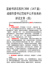 蓝秘书讲话系列471(158篇)成都市委书记范锐平公开发表的讲话文章(四)2020年12月今天为大家推荐是的是现任成都市委书记范锐平公开发表的讲话文章。推荐理由:1.文似看山不喜平。不平体现在“三气三足”。他的文章“底气”十足。他从最基层的乡镇干部干起,在基层工作13年,历任镇党委党委副书记、副县长、县级市市长等职务,对基层情况非常熟悉,文章“接地气”。他的文章“大气”十足。他先后担任湖北省发改委副主任、省政府副秘书长、市委书记等职务,既有经济理念,又有宏观视野,文章“高大上”。他的文章“正气”十足。他担任四川省委组织部长4年,形成了一丝不苟、严谨务实的文风,文章“严实细”。2.一蓑烟雨任平生...
