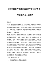 庆祝中国共产党成立102周年暨XXX“两优一先”表彰大会上的讲话