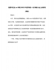 党委书记在xx学院2022年度“两优一先”表彰大会上的讲话(高校)同志们:今天,我们在这里隆重集会,表彰xxxx年度优秀共产党员、优秀党务工作者、先进基层党组织,以这种形式隆重庆祝中国共产党成立xxx周年,从党的伟大奋斗的光辉历史中汲取奋勇前进的力量,动员全院党员干部和师生员工为实现学院新一轮高质量发展而努力奋斗。首先,我代表学院党委,向全院共产党员和党务工作者致以诚挚问候,受到表彰的集体和个人表示热烈祝贺!一年来,学院以习近平新时代中国特色社会主义思想为指引,全面贯彻落实习近平总书记关于教育工作的重要论述,紧紧围绕立德树人根本任务,坚持和加强党的领导,全面加强党的建设,锐意改革创新,砥砺奋进...