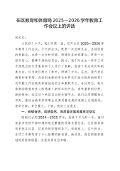 在区教育和体育局2025—2026学年教育工作会议上的讲话同志们:大家好!今天,我们齐聚一堂,召开全区2025—2026学年教育工作会议。今天的会议,既是一次回顾过去、总结经验的表彰会,也是一次分析形势、明确任务的部署会,更是一次坚定信心、鼓舞干劲的动员会。刚才,我们对过去一学年工作中涌现出的先进集体和个人进行了表彰,宣读了有关决定和制度办法,这为我们树立了标杆,明确了方向。在此,我代表区教育和体育局,向受到表彰的单位和同志们表示热烈的祝贺!向辛勤工作在教育体育战线的全体教职员工、各位同志,致以崇高的敬意和衷心的感谢!新学年的开启,意味着新的征程、新的使命。站在这个承前启后的关键节点,我们必须...
