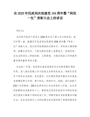 在2025年民政局庆祝建党104周年暨“两优一先”表彰大会上的讲话