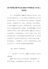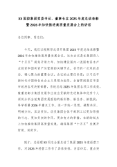 XX国控集团党委书记、董事长在2025年度总结表彰暨2026年加快推进高质量发展会上的讲话各位同事、同志们: 今天,我们以视频形式召开集团2025年度总结表彰暨2026年加快推进高质量发展会议,这次会议是在集团迈入“十五五”规划开局之年、加快建设国内一流国有资本产业投资和国有资产运营商的关键节点,召开的一次承前启后、凝心聚力的重要会议。会议的主要任务是:以习近平新时代中国特色社会主义思想为指导,全面贯彻落实市委市政府各项决策部署,系统总结2025年集团各项工作成效,隆重表彰为集团发展作出突出贡献的先进集体和优秀个人深刻分析当前集团发展面临的新形势、新任务、新挑战,科学部署2026年重点工作,...