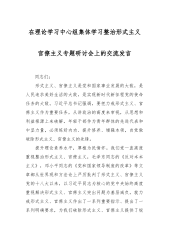 在理论学习中心组集体学习整治形式主义官僚主义专题研讨会上的交流发言