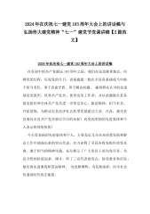 2024年在庆祝七一建党103周年大会上的讲话稿与乡镇庆祝七一建党103周年暨“两优一先”表彰大会主持词【两篇文】