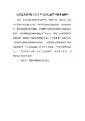 社区党支部书记2022年“三八红旗手”申报事迹材料XXX,X市X区X社区党支部书记、社区主任。多年来,XXX以关爱每一位居民为宗旨,以引导居民拓宽就业思路、提升就业能力、稳步实现就业为突破口,在抓好生活帮扶的同时重点做好就业帮扶;以就业帮扶提升精准脱贫的工作实效,得到了各级领导和居民群众的一致好评。社区先后荣获“全国三八红旗集体”、全国“社区儿童保护与服务体系项目试点单位”、“全国最美志愿服务社区”等多项荣誉称号,个人先后荣获x市“芙蓉百岗明星”、“市社区教育先进个人”、“市百姓学习之星”、x区“三八红旗手”、“优秀共产党员”、“优秀党务工作者”等荣誉。 一、提志气,榜样引领激发内生动力 ...