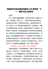在西二镇庆祝中国GC党成立100周年暨“七一”表彰大会上的讲话西二镇党委书记柳云彪(2021年6月30日)同志们:今天,我们在此隆重聚会,热烈庆祝中国GC党成立100周年,并对各条战线表现优异、积极奉献的先进党支部、优秀党务工作者、优秀GC党员、优秀村组干部进行表彰,目的是展示全镇各党组织、全体党员积极奋发、追赶跨越的新风貌,动员各级党组织和广大GC党员进一步围绕中心、服务发展,以更加饱满的工作热情、更加昂扬的精神状态,为建设南盘江流域独具魅力的“特色水果小镇”而努力。在此,我谨代表中共西二镇委员会、西二镇人民政府,向在座全体党员并通过你们向全镇党员同志致以节日的问候!向受表彰的先进集体和先进...