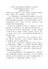 在137厂庆祝中国GC党成立100周年大会上的讲话河北燕兴机械有限公司党委书记宗永生(2021年6月26日)尊敬的军方领导,尊敬的市、区领导,尊敬的凌云集团领导,尊敬的各界同仁,尊敬的广大职工、离退休职工、同志们,大家好!今天,我们隆重集会,庆祝中国GC党成立100周年、人民兵工创建90周年。首先,我代表厂党委、厂部向出席此次大会的领导、来宾再次表示热烈的欢迎和衷心的感谢!向今天受表彰的先进集体、先进个人表示热烈的祝贺!向工厂广大党员、干部、职工,向始终关心工厂发展的离退休干部职工致以崇高的敬意!党的百年历史,波澜壮阔,惊天动地。是一部坚定信念、百折不挠、攻坚克难、永往直前的奋斗史,是一部充满...