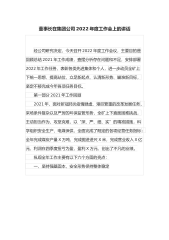 在2022年度工作会上的讲话发耳煤业董事长肖国强(2022年2月11日)同志们:经公司研究决定,今天召开2022年度工作会议,主要目的是回顾总结2021年工作成绩,查摆分析存在问题和不足,安排部署2022年工作任务,表彰各类先进集体和个人,进一步动员全矿上下统一思想、提高站位,立足新起点、认清新形势、瞄准新目标,坚定不移完成今年各项任务目标。第一部分2021年工作回顾2021年,面对新冠肺炎疫情肆虐、艰巨繁重的改革发展任务、采场条件复杂以及严厉的环保监管形势,全矿上下直面困难挑战,主动担当作为、攻坚克难,以“深、严、细、实”的精准措施,科学组织安全生产、电煤保供,全面完成了既定的各项经营任务指...