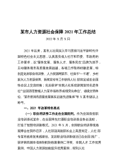 某市人力资源社会保障2021年工作总结2022年X月X日2021年以来,某市人社局深入学习贯彻习近平新时代中国特色社会主义思想,认真落实省人社厅和市委、市政府的工作要求,以“服务发展、服务人才、服务民生”品牌为抓手,主动服务我市高质量发展超越,各项工作取得积极进展,特别是龙岩职业培训券、人力资源网某市、社保卡“一卡通”、乡村振兴人力资源保障、新闻宣传等工作获得人社部肯定或在全国性会议上交流经验;先后获评“全国人社系统新闻宣传先进单位”“全国清理整顿人力某市场秩序成绩突出单位”、省级文明单位、“某市坚持高质量发展落实赶超先进集体”等X某市级以上称号。一、2021年改革特色亮点(一)职业培训券工作...