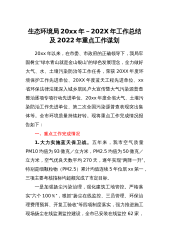 生态环境局20xx年-202X年工作总结及2022年重点工作谋划