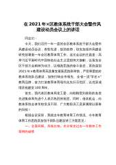 在2021年×区教体系统干部大会暨作风建设动员会议上的讲话