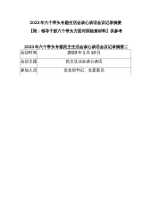 2023年六个带头专题生活会谈心谈话会议记录摘要【附:领导干部六个带头方面对照检查材料】供参考2023年六个带头专题民主生活会谈心谈话会议记录摘要二会议时间2023年1月10日会议主题民主生活会谈心谈话参加人员党支部书记、支委委员会议内容支部书记:按照工作部署,我作为分管领导,今天约你来谈谈心,主要是想了解一下你的思想、学习、工作、生活和廉政建设情况,来帮助查找问题,促进提升。好,你来先谈一下自己的理论学习情况吧。支委委员:好的,书记,我一年来一直通过集体学习和个人自学相结合的方式持续学习党的先进理论,也会及时跟进领会习近平总书记的理论思想,在学习中不断提升自己的理论水平。但是应该检视一下,自...