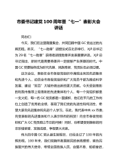 在西二镇庆祝中国GC党成立100周年暨“七一”表彰大会上的讲话西二镇党委书记柳云彪(2021年6月30日)同志们:今天,我们在此隆重聚会,热烈庆祝中国GC党成立100周年,并对各条战线表现优异、积极奉献的先进党支部、优秀党务工作者、优秀GC党员、优秀村组干部进行表彰,目的是展示全镇各党组织、全体党员积极奋发、追赶跨越的新风貌,动员各级党组织和广大GC党员进一步围绕中心、服务发展,以更加饱满的工作热情、更加昂扬的精神状态,为建设南盘江流域独具魅力的“特色水果小镇”而努力。在此,我谨代表中共西二镇委员会、西二镇人民政府,向在座全体党员并通过你们向全镇党员同志致以节日的问候!向受表彰的先进集体和先进...