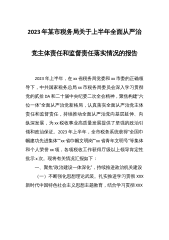 2023年某市税务局关于上半年全面从严治党主体责任和监督责任落实情况的报告