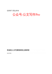 公文写作Pro公众号精选汇编目录1.在2020年全国推动完善“四好农村路”高质量发展体系现场会上的致辞.........................102.奋力开创法治中国建设新局面.................................................................................163.在全省提升应急管理和安全生产综合能力培训暨专题研讨会上的讲话............................254.在区委区政府工作会上的讲话..................................................