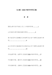 (14篇)2026年新年贺词汇编目录国家主席习近平发表二〇二六年新年贺词..............1山东省省长周乃翔发表新年贺词......................4贵州省委书记徐麟省长李炳军向全省干部群众致新年贺词................................................9汕头市委书记温湛滨市长陈涛向全市干部群众致新年贺词...............................................13中共拉萨市委、拉萨市人民政府2026年新年贺词......17中共重庆市委、重庆市人民政府2026年新年贺词......20中共...