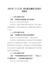 2025年党支部主题党日活动计划表与2025年“三会一课”“主题党日”计划表【两份】