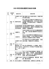 2025年党支部主题党日活动计划表与2025年“三会一课”“主题党日”计划表【两份】2025年党支部主题党日活动计划表序号活动时间活动方式活动内容12025年1月专题学习研讨集中观看2025年新年贺词,积极开展学习研讨交流。组织生活会深入开展习近平新时代中国特色社会主义思想主题教育活动,结合自身工作查摆问题,召开组织生活会,开展批评与自我批评。开展送温暖和模范先锋见行动活动结合春节前慰问等活动,组织党员对小组内困难党员、建档立卡困难群众开展送慰问、送温暖活动22025年2月专题学习支部书记领学习近平总书记最新重要讲话、文章、指示批示精神和中央会议文件等学习《习近平新时代中国特色社会主小组学习义...