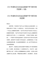 (2篇)2022年度民主生活会会前集中学习研讨发言提纲(班子成员)