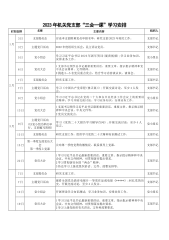 2023年机关党支部“三会一课”学习安排时间安排名称主要内容组织人1月3日支部委员会讨论本支部困难党员申报名单,研究支部2023年相关工作。支部书记3日主题党日活动2022年度组织生活会;民主评议党员。支部书记5日党小组会学习习近平总书记2023年新年贺词(观看视频);学习业务知识,安排业务工作。党小组长6日党员大会1支部书记领学总书记最新重要讲话、重要文章、指示批示精神和党中央会议精神、文件精神。2挑选3—5名党员重点发言,结合学习内容谈认识、谈体会。支部书记2月7日支部委员会研究支部工作。支部书记7日主题党日活动学习《中国共产党章程(修正案)》;开展交流讨论,至少4人发言。支部书记9日党小...