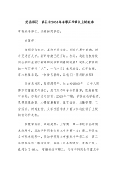 春回大地万象新踔厉奋发正当时——在2023年春季开学典礼上的致辞老师们、同学们:大家新学期好!一元复始,万象更新。我们刚刚度过了一个愉快的寒假生活,今天重返校园,在一个新的校址,迎来了新的学期,首先我谨代表学校向全校师生致以新年的问候,祝愿同学们新学年学业进步,健康成长。同时也祝愿全体教职员工工作顺利,家庭幸福。过去的2022年,我们全校师生励精图治,奋发有为,学校各项工作顺利进行,并且创造了亮眼成绩,交上了满意答卷。我们锐意改革,积极践行职业教育类型定位,办学质量取得新成就。2022年学校先后获评“全国职业院校技能大赛优秀组织单位”、×省优质专业群建设学校、×市×高水平职业学校建设单位、×市...