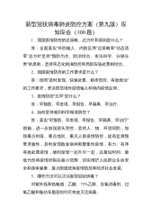 (100题)新型冠状病毒肺炎防控方案(第九版)应知应会