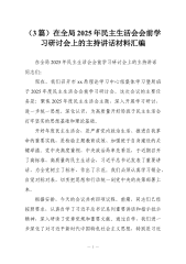 (3篇)在全局2025年民主生活会会前学习研讨会上的主持讲话材料汇编